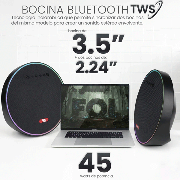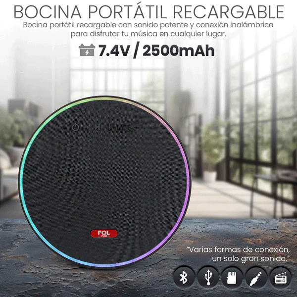 Bocina TWS Recargable Portátil con Luz marca FOL