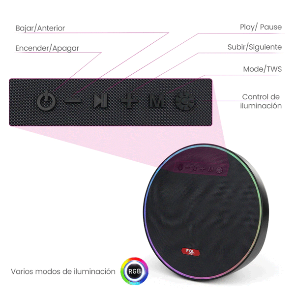 FOL-FS-R321Bocina TWS Recargable con Luz RGB